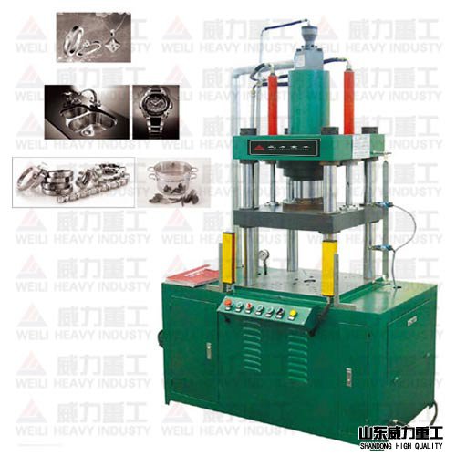 山東四柱液壓機低能耗、高效率、機款新穎設有液壓機安全維護設備、主動記數功用其活動橫梁二段速度操控:空載疾速、工進慢速靠模、拉伸主缸、壓邊缸具有上下限位維護,賞析限行程方位設定簡略、便利、方便