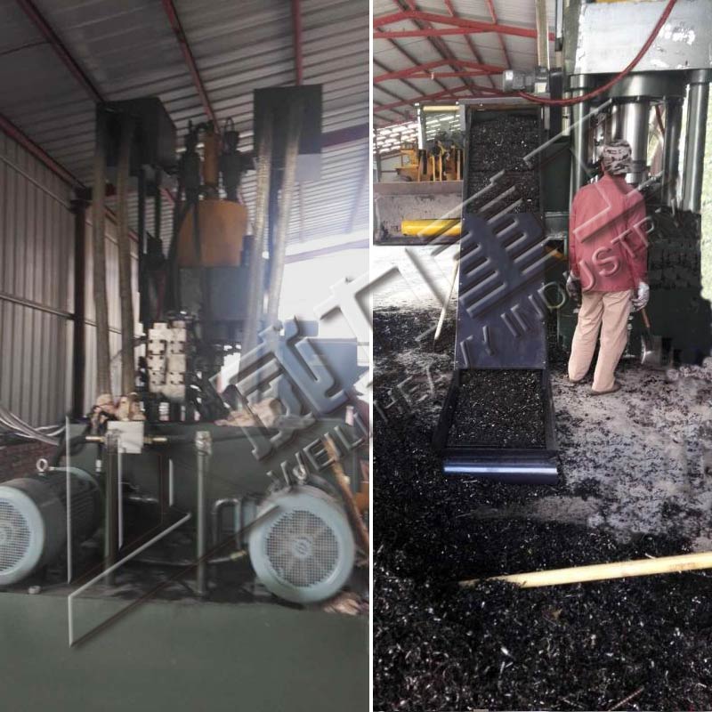 1600噸全自動金屬壓塊屑餅機客戶車間調試圖:
