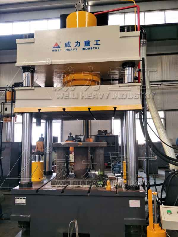 山東威力重工機床有限公司生產的本款500噸巧克力不銹鋼水箱板成型液壓機,采用三梁四柱液壓機結構形式,配套標準不銹鋼水箱板沖壓模具,可生產各種規格的不銹鋼水箱板。不銹鋼水箱液壓機帶有下頂缸脫模裝置,頂出行程300mm,頂出力200T,也可根據需求配備液壓墊裝置。