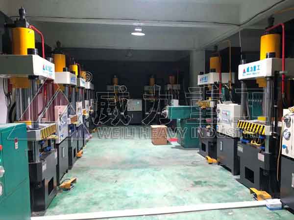 PE塑料菜板砧板成型100噸四柱液壓機由上橫梁、下橫梁、4個立柱和16個內外螺母組成一個封閉的框架,框架承受全部的工作載荷。工作缸固定在上橫梁上,工作缸內有工作柱塞與活動橫梁相連接。活動橫梁以4根立柱為導向,在上、下橫梁之間往復運動。活動橫梁下面固定有上砧,而下砧則固定與下橫梁上的工作臺上。當高壓液體進入工作缸后,對柱塞產生很大的壓力,推動柱塞、活動橫梁及上砧向下運動,使工件在上、下砧之間產生塑性變形。同時在完成工作之后實現回程運動。