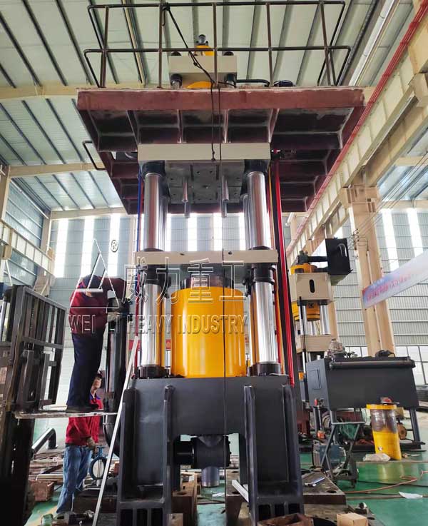 本機是一臺公司設計生產的液壓專用機,油缸下置,速度快、三梁四柱式結構,帶有下頂缸,配有伺服數控系統,是公司針對客戶的產品,量身打造設計的一款專用機——800噸特殊專用機,又稱800噸伺服四柱液壓機、800噸快速液壓機。該設備能在允許范圍內可以設定多段沖程速度、精確到位停止、精確到達壓力等,在操作臺上可以對壓力、壓型深度、保壓時間進行數值輸入,操作簡單。